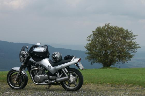 Baujahr 1994 | 138000 km | VS 51 B: Gabel mit Bruecken und Felge komplett von der GSF 1200, Doppelbremsscheibe vorn mit Sechskolbenstopper, Stahlflex v+h, Superbikelenker Lucas Typ10, hydraulische Kupplung von VS800, Minischeibe, schwarz gepulverte Felgen mit poliertem Rand, Gabel incl. Bruecken und Sozius-Buegel poliert, Kellermann-Miniblinker, kurzes Schutz"blech" hinten, Kennzeichen nach oben gesetzt, Audi-Silber lackiert. (Bilder sind nicht mehr ganz aktuell)