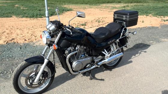 Baujahr 1996 | 93075 km | Progressive Gabelfedern von Wilbers,Stahlflex Bremsleitungen von Melvin, Hepco Becker Träger, Rest original. Und für die Touren mit Sozia noch eine King & Queen Sitzbank.