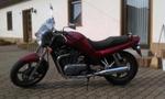 In Originalzustand gekauft. Mittlerweile Stahlflex vorn und hinten, Puig Mini Scheibe, 12V Steckdose unterm Sitz. V2A Kühlerabdeckung, V2A Rahmendreiecke. Umbau/Rückbau auf Einzelklemmen am Lenker für Navilösung