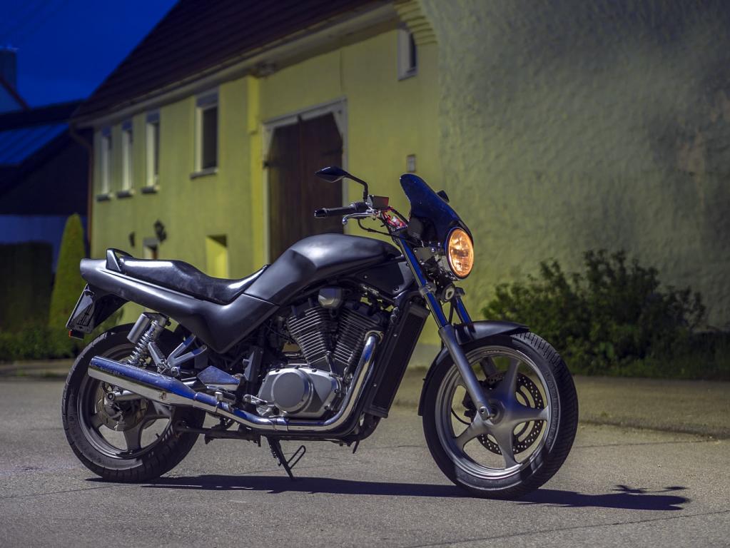 kleine Blinker, flacher Lenker, Heck gekürzt, Kennzeichen hochgelegt