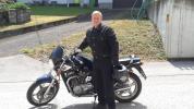 Originale Suzuki Seitenkoffer, Bugspoiler, LSL-03 Lenker mit längerem Gas und Kupplungsseil, Wilbers Ferden vorne und Hagon Dämpfer hinten. Heck ist noch in Arbeit.