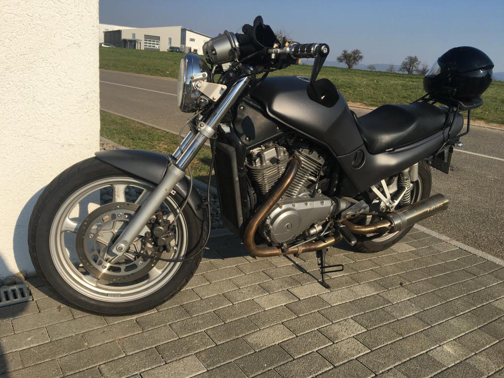Superbikelenker, Lenkerendenspiegel, 12V-Steckdose, 2in1 Auspuff Edelstahl und übern Winter neue Farbe.