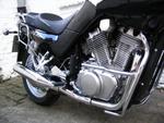 Fivestars Halbschale, Corbin-Sitzbank, WhitePower Gabelfedern, Stahlflex vo+hi, Blinker Little Duke vo+hi, Sturzbügel, Givi Koffer, Bridgestone BT45, Bike-Computer, Kennzeichen ..-VX800 :-)