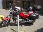 Kleines Windschild, Hepko&Becker-Träger mit Koffen und Topcase. 2farbig bezogene Sitzbank. Wilbers-Gabelfedern. Hab die Gute inzwischen verkauft und fahre jetzt eine Suzuki SV650N. Ein Bild hänge ich von ihr hier rein. ;-)