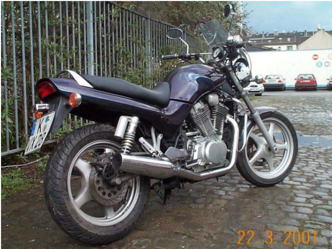 Windschild, Sturzbügel, Sitzbank, 980mm Lenker, White Power, Stahlflex vorn