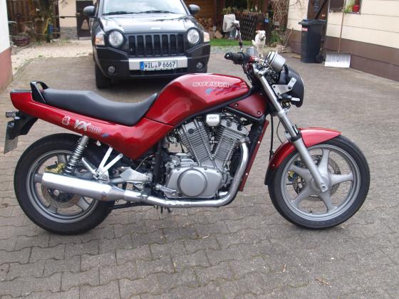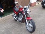 US-Modell. Eigene Veränderungen: ,MT-03 Scheinwerfer,Stahlflex rot hi/vo ,LED Zusatz-Rück/Bremslicht,Superbikelenker rot eloxiert, rutschhemmender Sitzbankbezug ,Miniblinker,Warnblinkanlage,Alu -Gummigriffe,Gabelprotektoren, lackierter Kühlerrahmen,Grill,Bremssättel und Gabelabdeckungen usw.