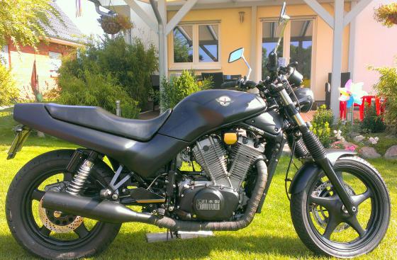 Mehrmonatigen Umbau 09.2014 abgeschlossen: ABM Superbikelenker, Spieler Stahlflex Titan, Highsider Hauptscheinwerfer, Kotflügelumbau, Heckumbau, Oldschool Led Rücklicht, kleine Kennzeichenhalterung, Mini Blinker Louis, Saito Sinterbremsbeläge, Wirth-Gabelfedern, graphitschwarzes Krümmerschutzband, angepasste Enduro Faltenbälge Telegabel und ALLES entlackt und selbst neu lackiert. Auspuffeinsätze von Sound Control Systems kommen nach dem nächsten TÜV :-)