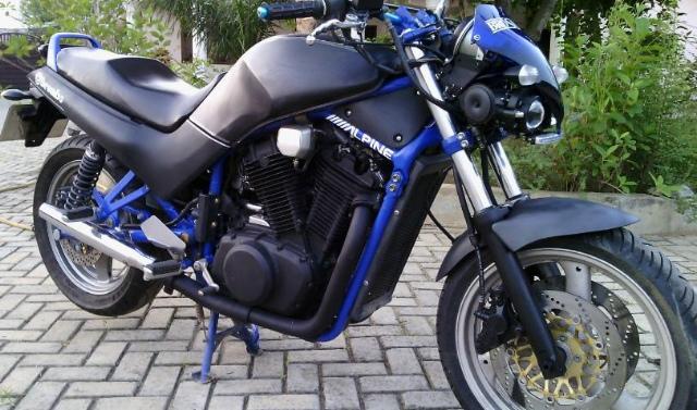 siehe bilder ..sonst wie vorher jedoch rahmen gekuerzt . auspuff . kun filter..mt09 blinker ruecklicht kennzeichenhalter..tacho tiefergesetzt ..doppelscheinwerfer spoilerscheibe so...heute gabelumbau ...auf doppelscheibe 17zoll Vorderrad ....Gabel stammt aus bandit400 plug and play