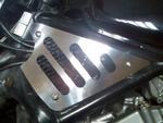 schwarze Minitourenscheibe von Puig, Stahlflexbremsschläuche von SPIEGLER vorn und hinten, Kofferträger-Gepäckbrücke schwarz von Hepco&Becker, Edelstahllenkerenden von FRITS ;-) VA-Lenkkopfverkleidung poliert, hinterlegt mit schwarzem Racinggitter von Peter Nowak ;-) Schwinge schwarz pulverbeschichtet, Kardangehäuse schwarz lackiert, Cateye-Miniblinker chrom mit schwarzem Blinkerglas, JAMA 2in2 Auspuffanlage