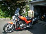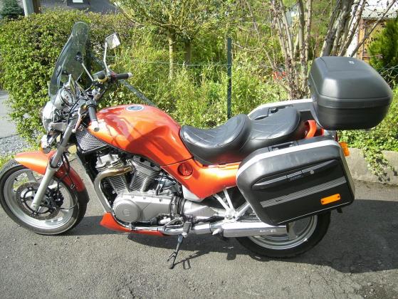 Lenkererhöhung, Givi-Scheibe,Seitenkoffer Original, Bugspoiler, Topcase,Stahlflexbremsleitungen Orange Schwarze Blinker vorn
